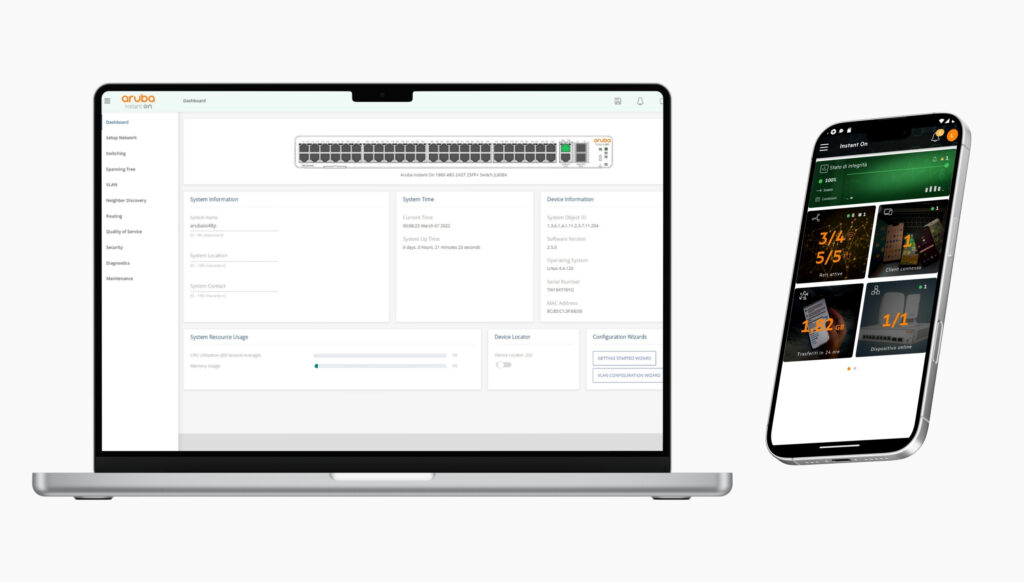 Todos os switches da linha Aruba Instant On podem ser gerenciados pela nuvem, através de um aplicativo ou interface web, o que facilita o monitoramento remoto e o gerenciamento centralizado de múltiplos dispositivos.