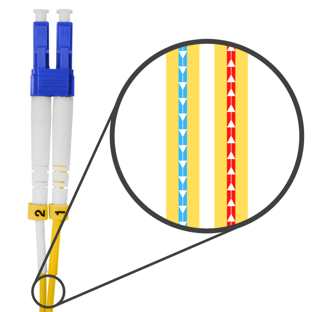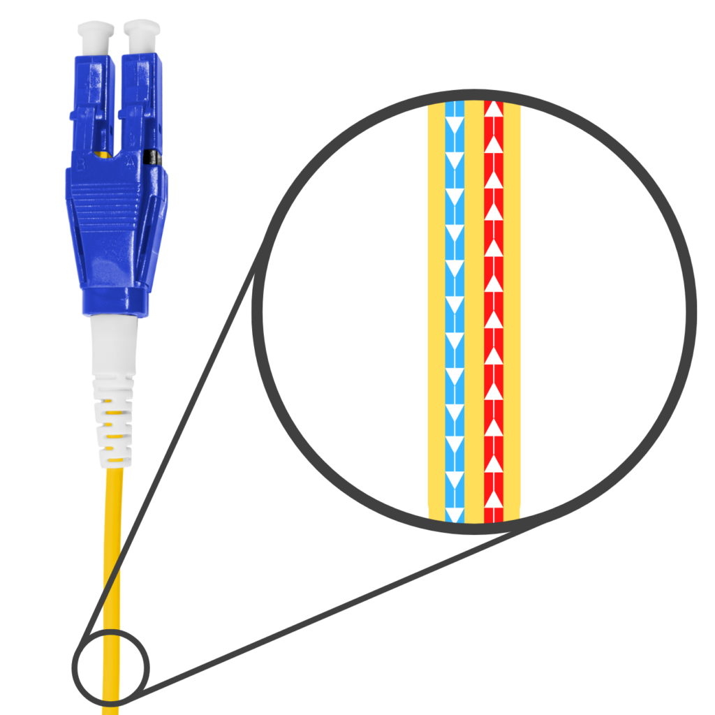 Os cordões LC Uniboot, por outro lado, reúnem as duas fibras em um único cabo. Essa solução compacta reduz significativamente o diâmetro total do conjunto e proporciona um aspecto muito mais organizado. Em data centers ou ambientes de alta densidade, essa diferença é crucial, pois facilita o gerenciamento, melhora o fluxo de ar e minimiza riscos de desconexões acidentais.